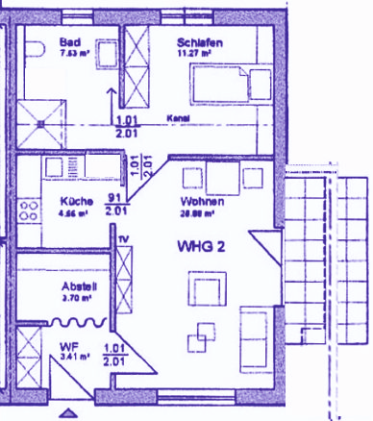 Alle Wohnungen sind ausgestattet mit Vinyl-Böden in Parkett Optik, TV/Kabel und Telefonanschluss, vollausgestattete Küche, ebenerdige Dusche im Bad, Waschmaschinenanschluß, Fussbodenheizung in allen Räumen.